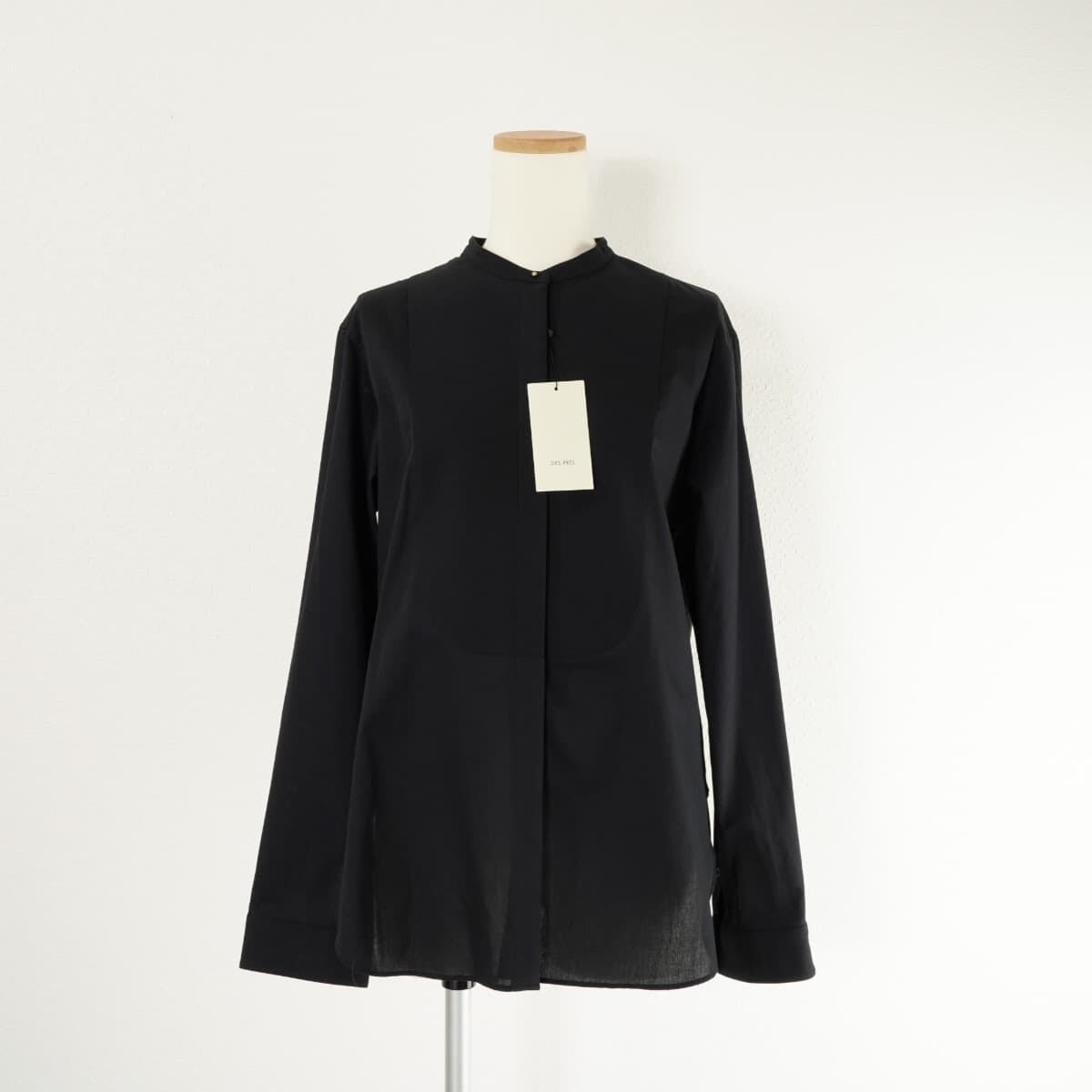 未使用 DESPRES デプレ ドビークロス ブザム シャツ バンドカラー ノーカラー トップス ロング 長袖 コットン 黒
