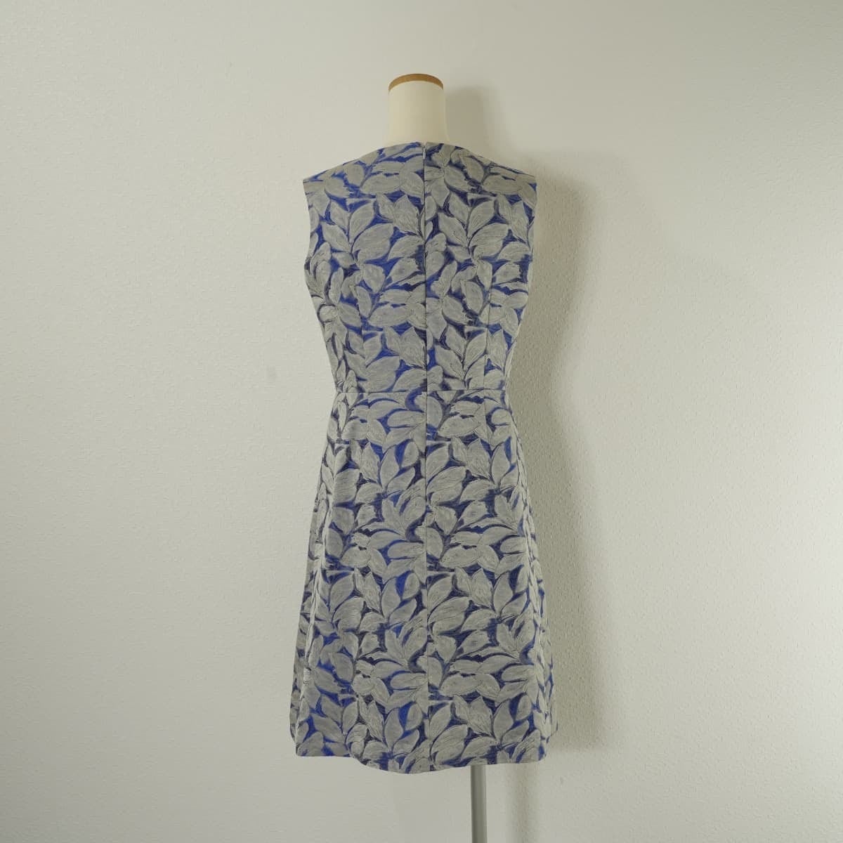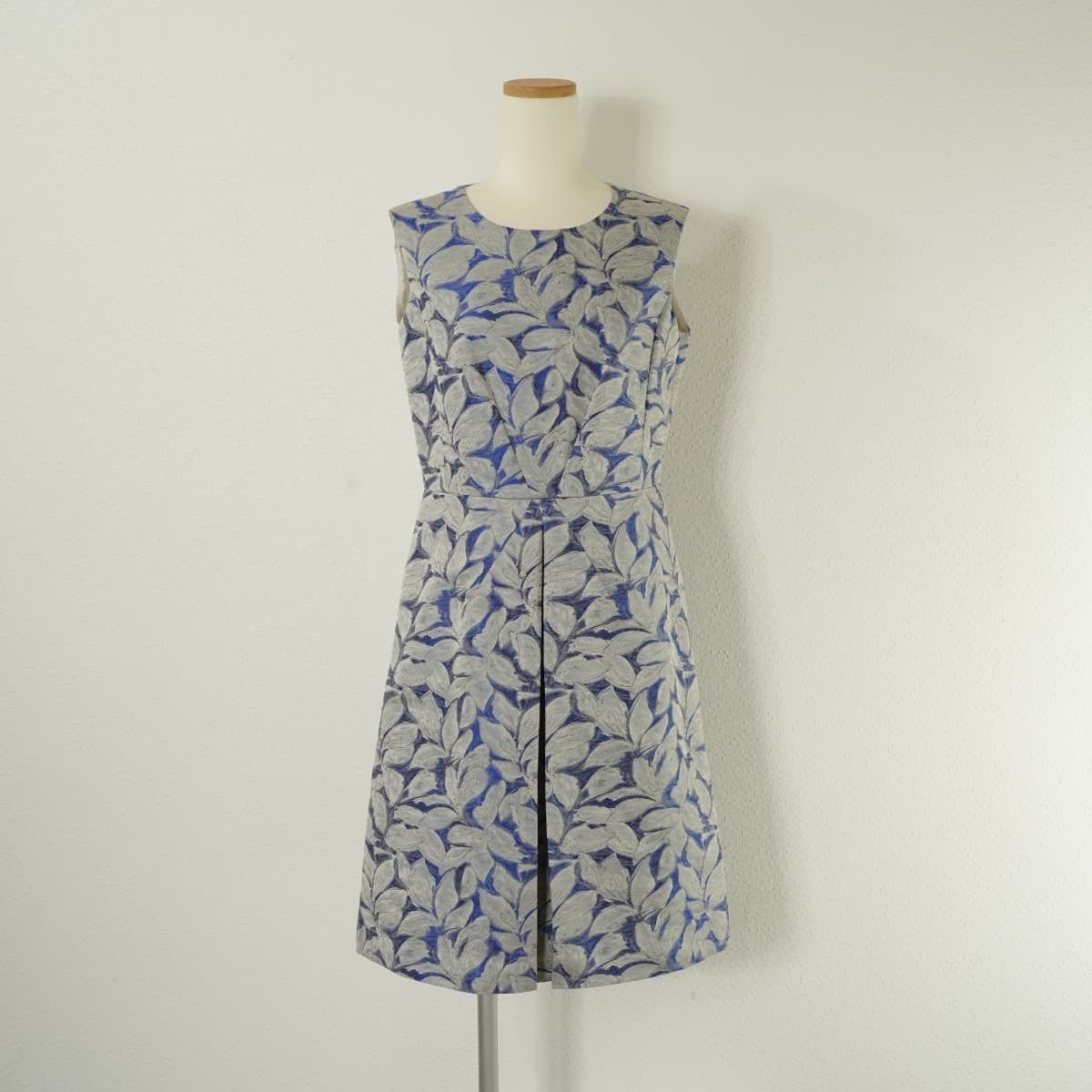 レナウン LESTERA レステラ 上品 ジャガード ワンピース ドレス ノースリーブ ひざ丈 タック フレア リーフ
