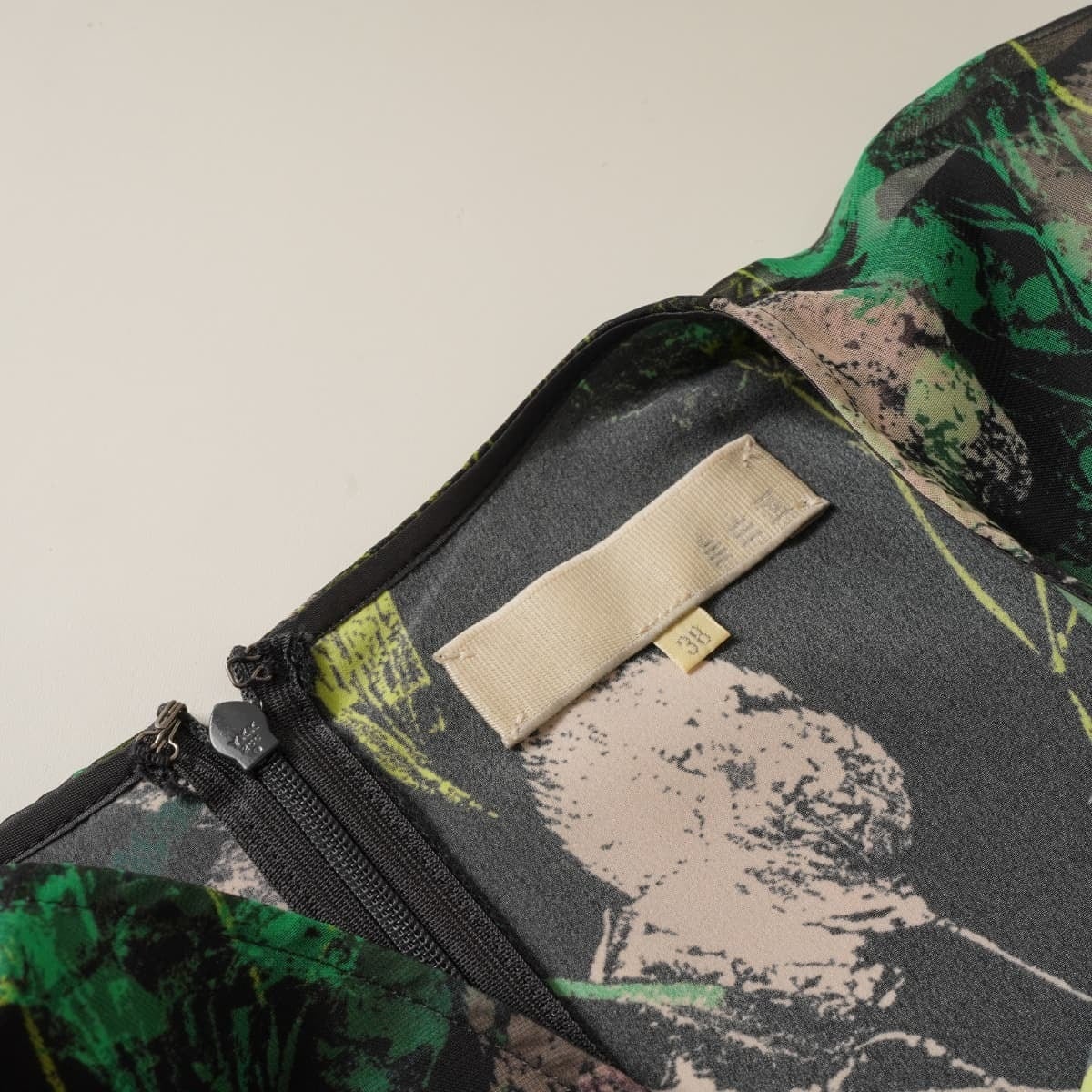 コメント:上品な自由区のワンピースです。透け感のあるシアー生地とポリエステルの生地を同じ柄の生地を重ねたデザインです。