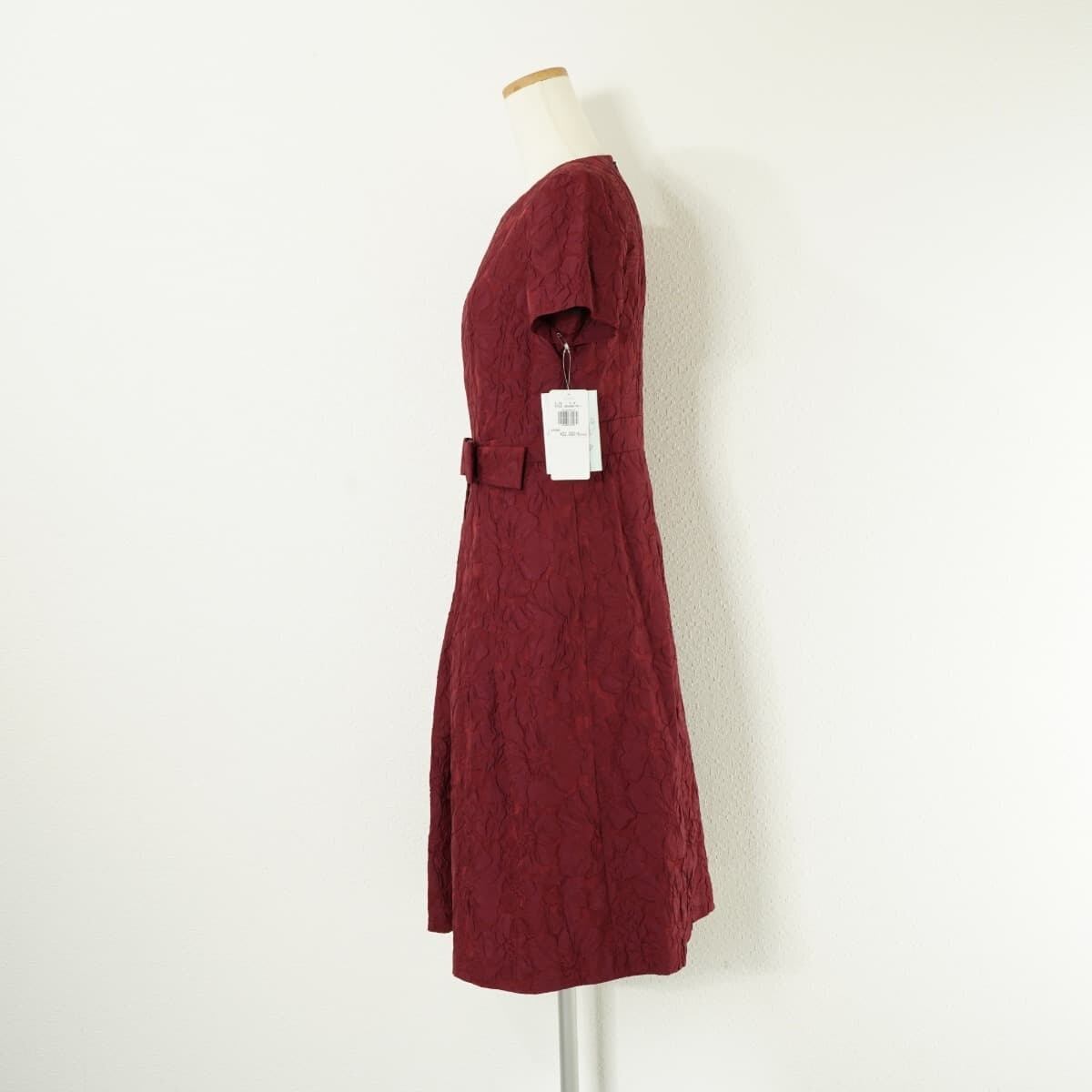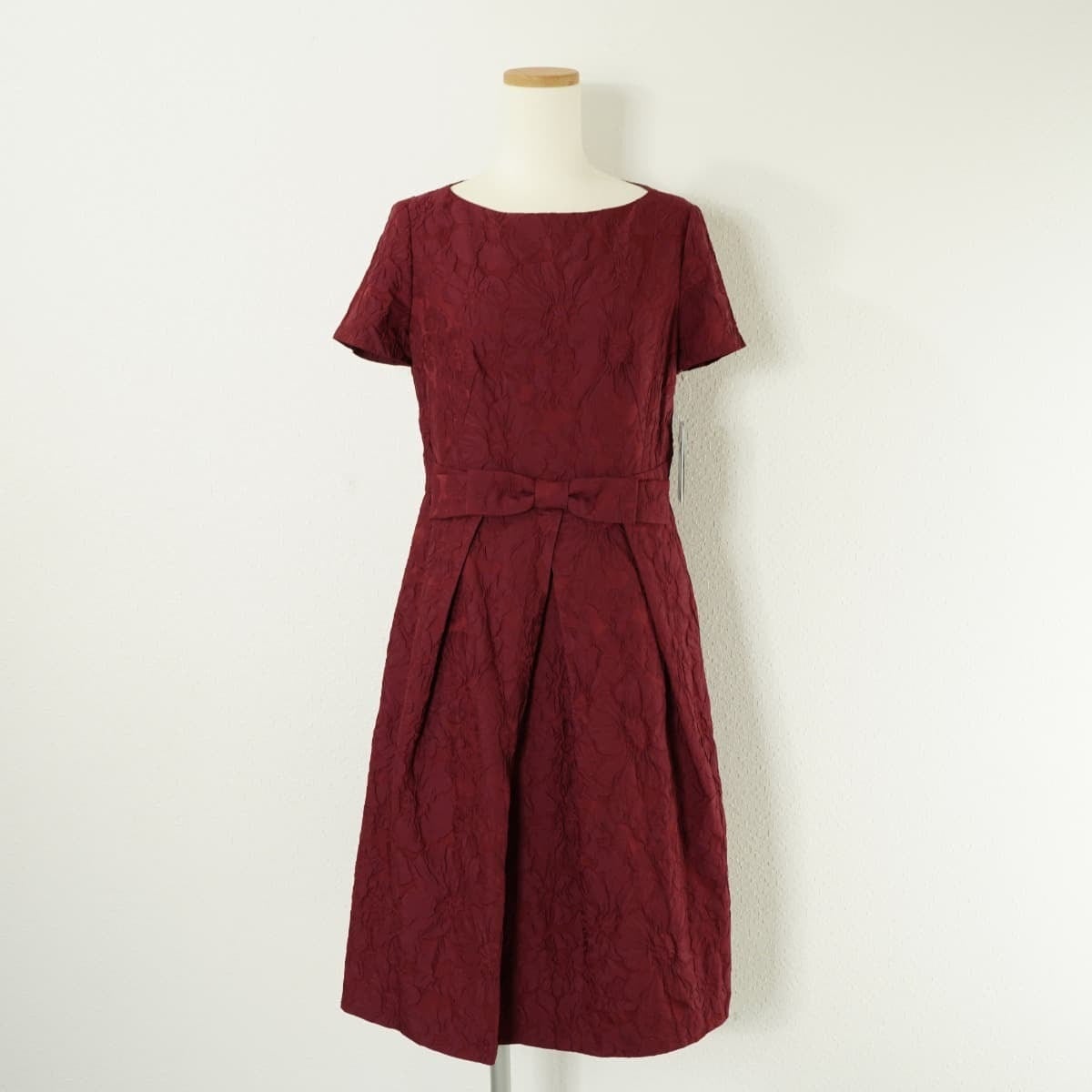 未使用 定価3.5万 NEMIKA by Leilian ネミカ バイ レリアン 上品 ジャガード ワンピース リボン ひざ丈 タック 半袖 花柄 フラワー