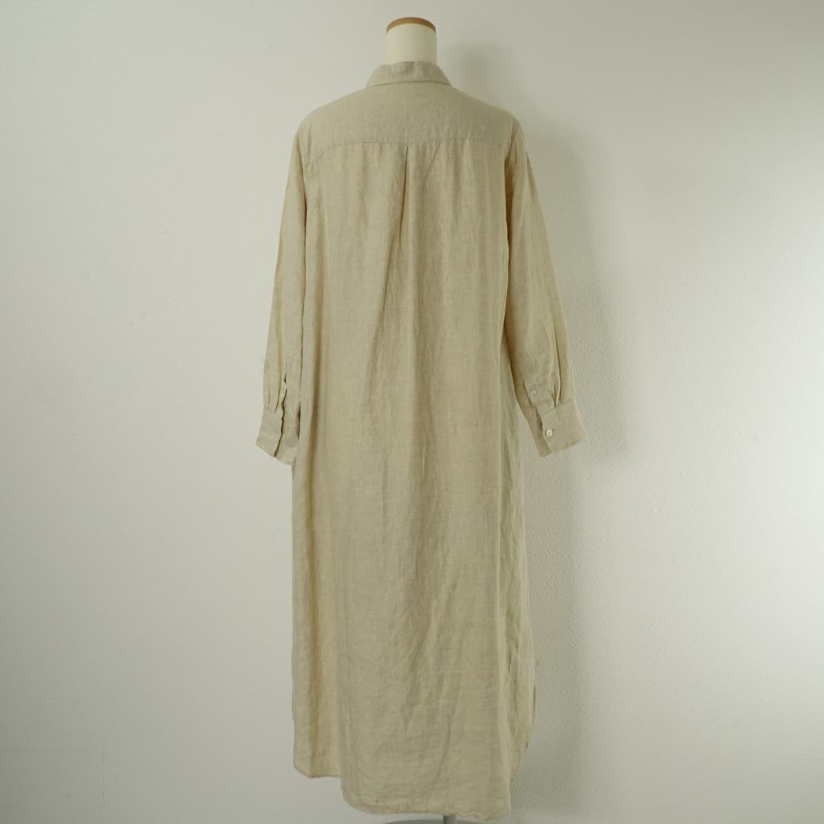 コメント:裾にかけて広がるフレアシルエットのシャツワンピース。 天然素材ならではのナチュラルな表情で、サイドに深めにスリットのデザインです。