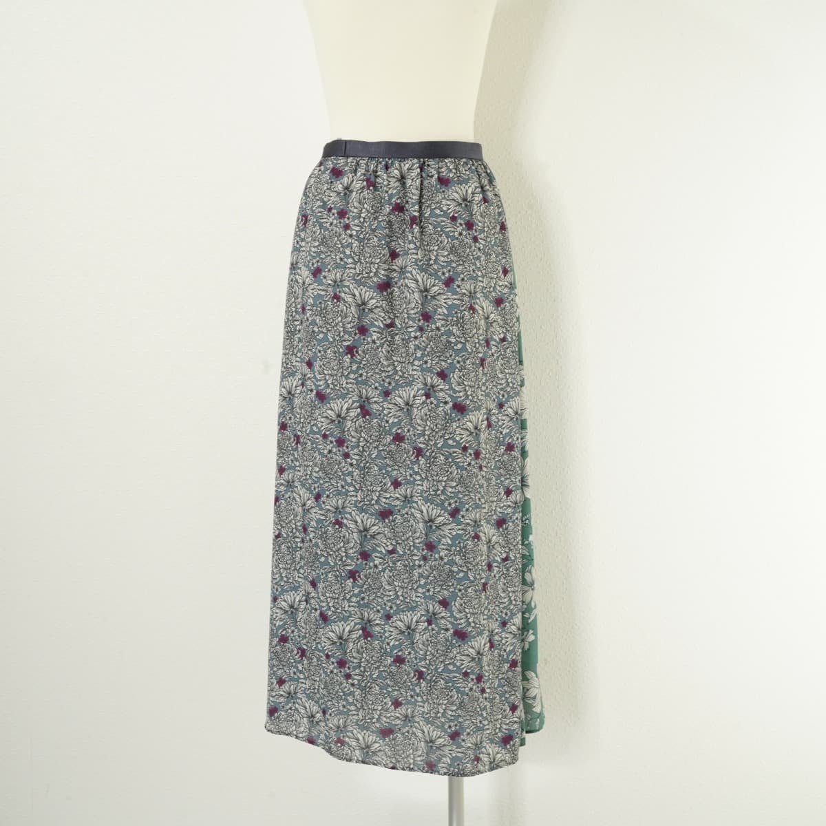 コメント:IENA フランスの大手テキスタイルメーカーDEVEAUX社のプリント生地で仕立てたスカート。サックスブルーの色地に異なる2種類の存在感のある花柄を組み合わせた感度の高いデザイン。 揺れ感があり、動きに合わせて表情が変わるデザインです。トーンを落ち着かせることで、華やかながらも大人の上品さ漂い、合わせるトップスによって前後2WAYで着用できます。取り外し可能のペチコート付きで、ご家庭で洗えてしわになりにくく、またウエストゴムの仕様で穿きやすさも抜群のアイテムです。