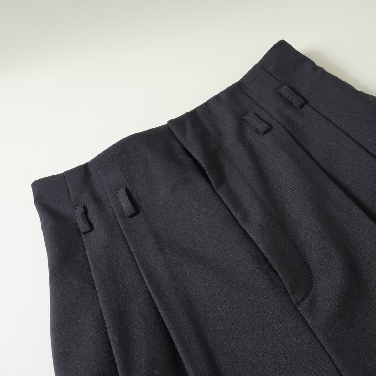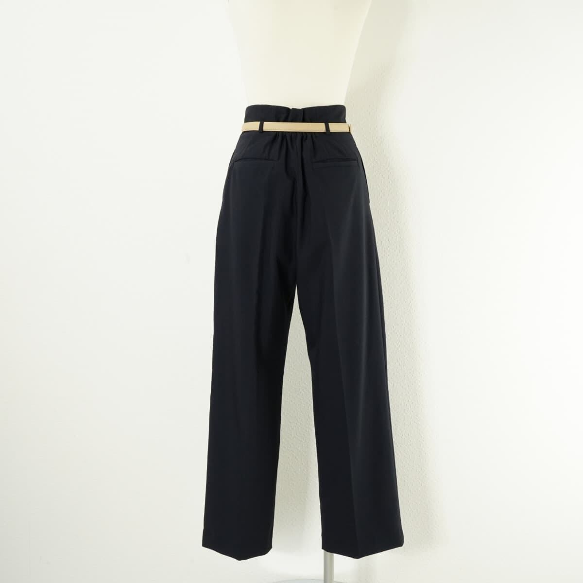 コメント:シルエットが綺麗なベルト付きパンツ。ハイウエストでタック、センターラインにワイドテーパードのシルエットで美脚効果抜群のアイテムです。
