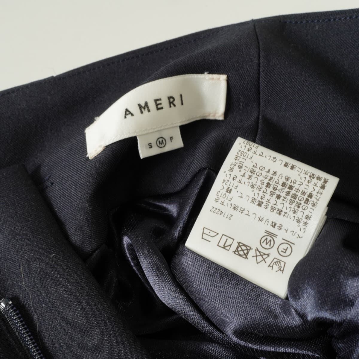 AMERI アメリ SHAPELY HIGH WAIST PANTS ハイウエスト パンツ ワイド タック センターライン ベルト 紺