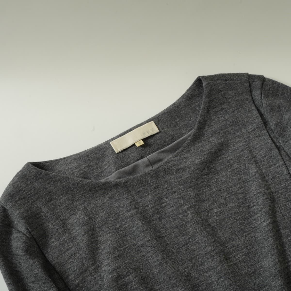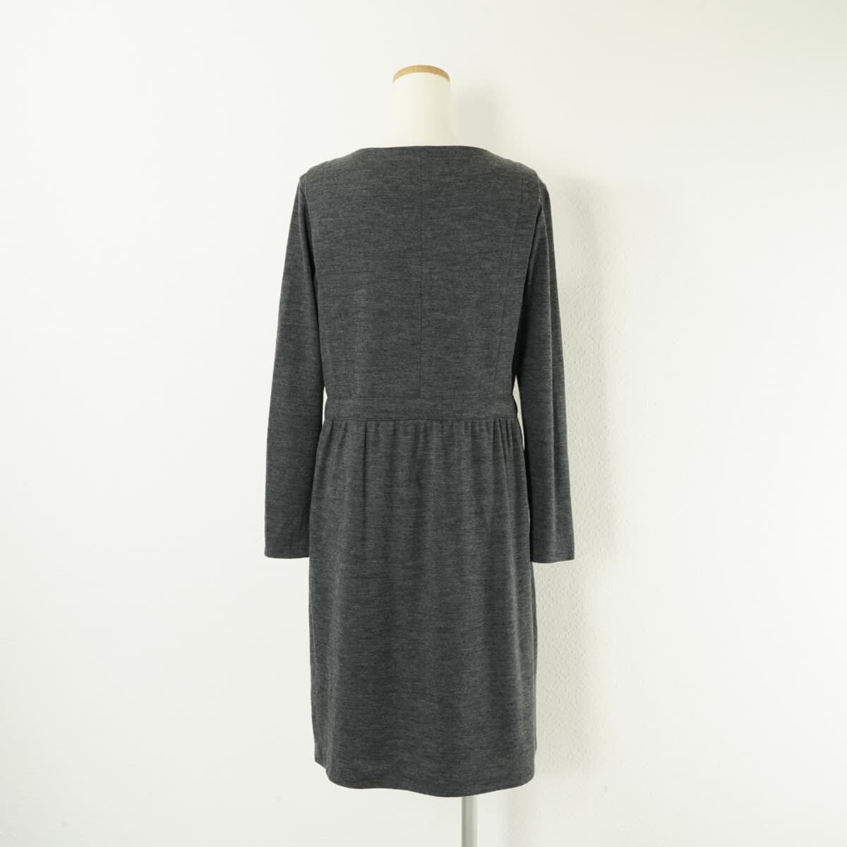 自由区 ジユウク ウール ワンピース 長袖 ひざ下丈 ウエストリボン グレー