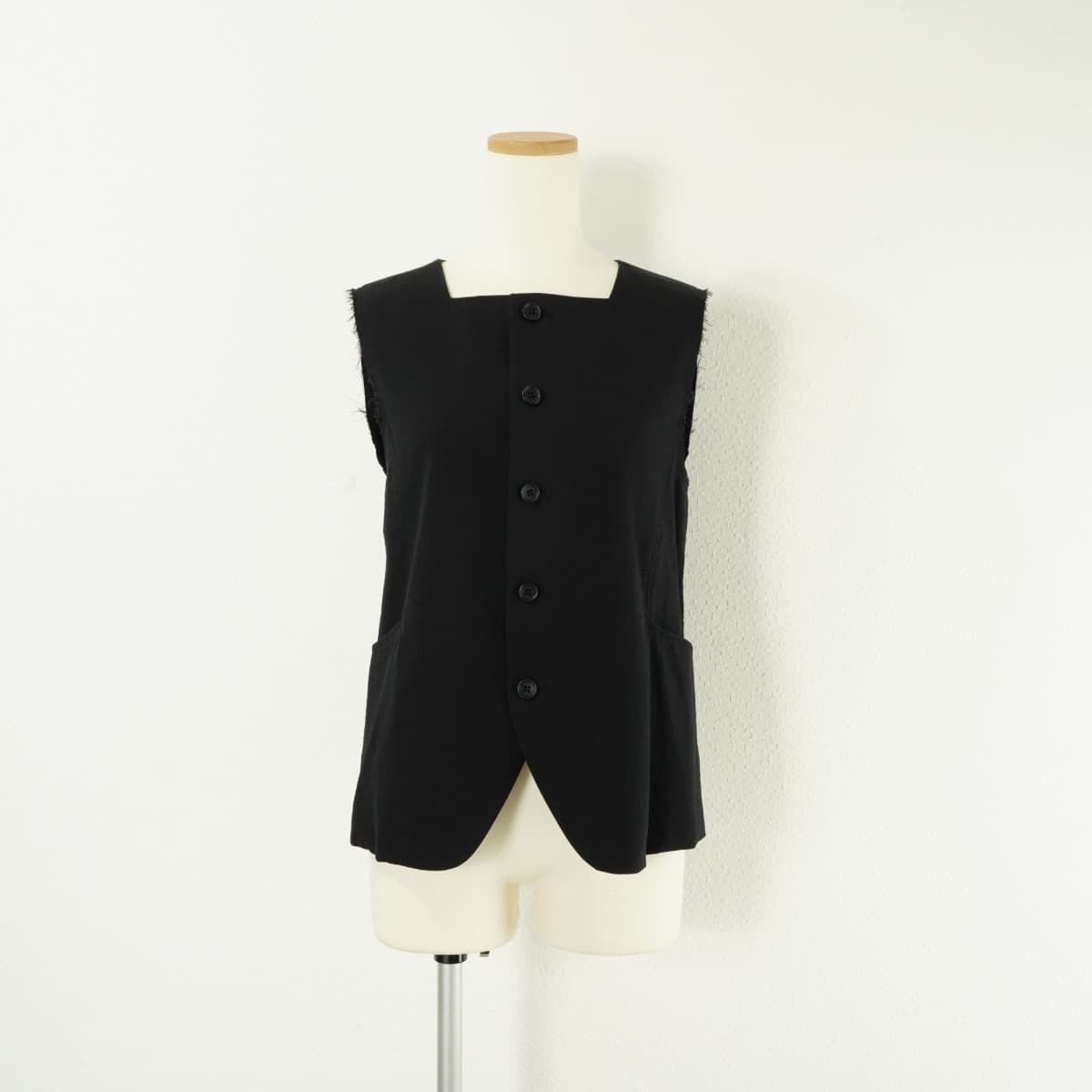 MACPHEE マカフィー コットン ナイロン ピケ スクエアネック ジレ ベスト 前開き ボタン ブラック 黒