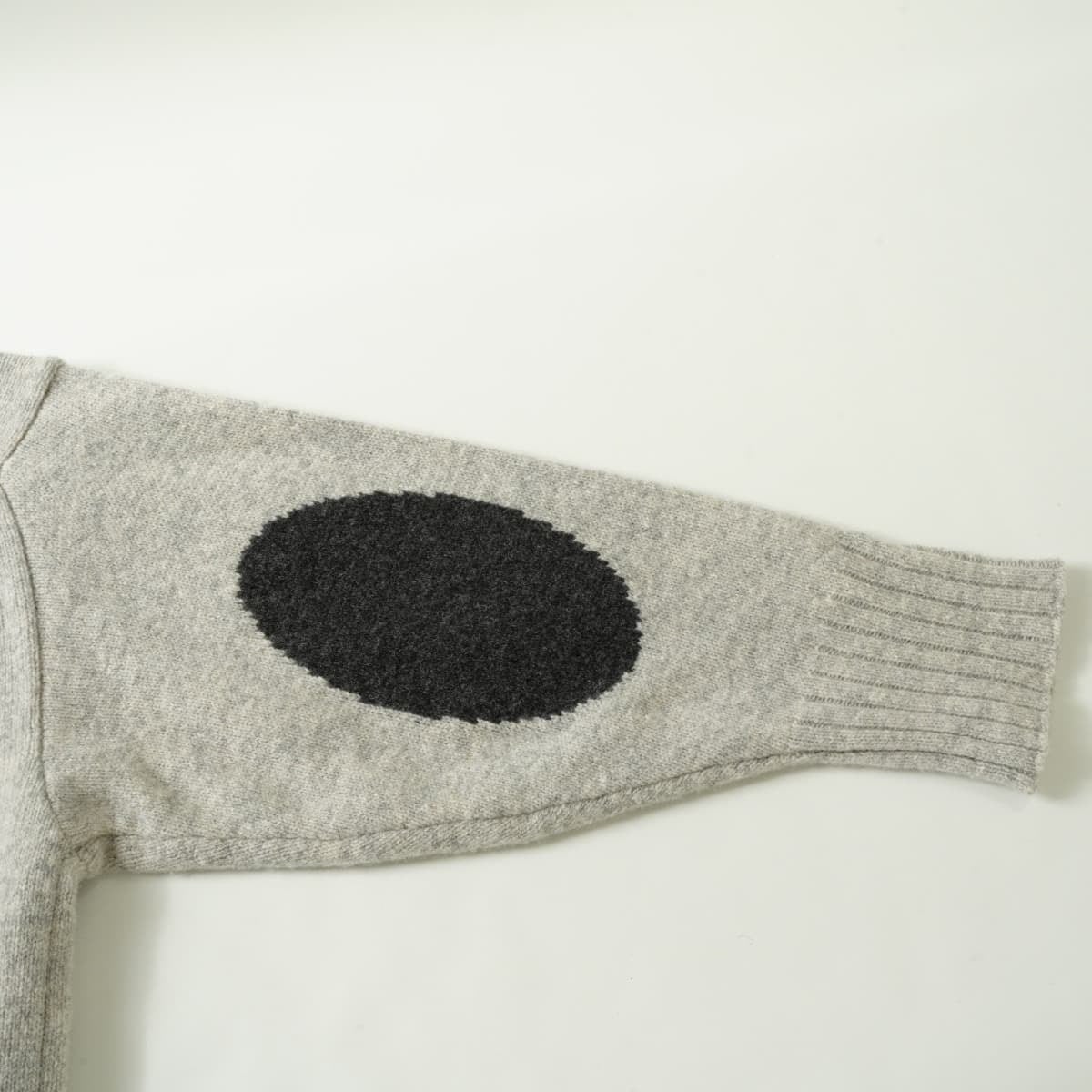 両肘のエルボーパッチがお洒落なアクセントで、オーバーサイズのデザインです。
