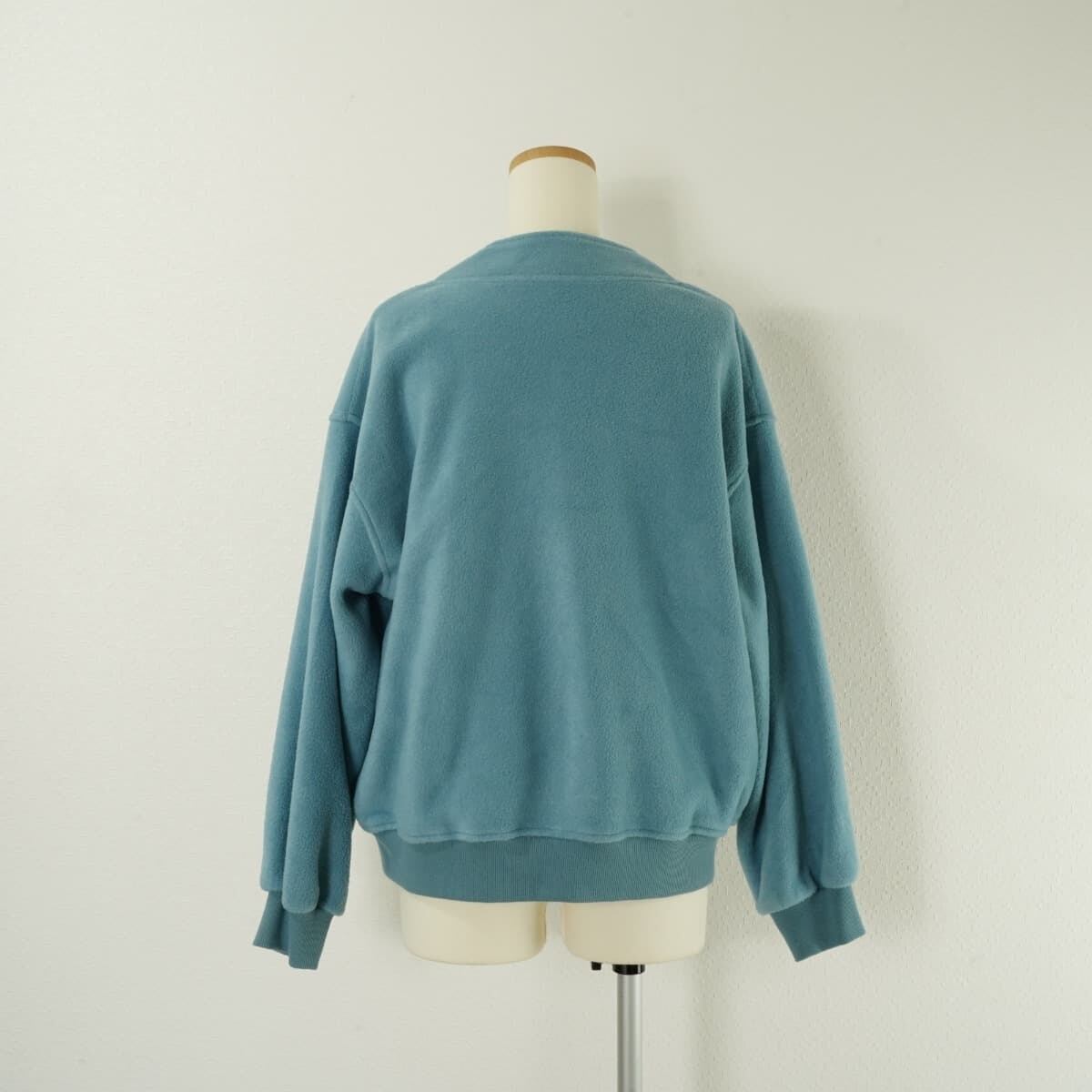 コメント:大きめのフロンド釦がアクセントの肌触りがよく軽い上品な毛並みのフリース素材のブルゾンです。