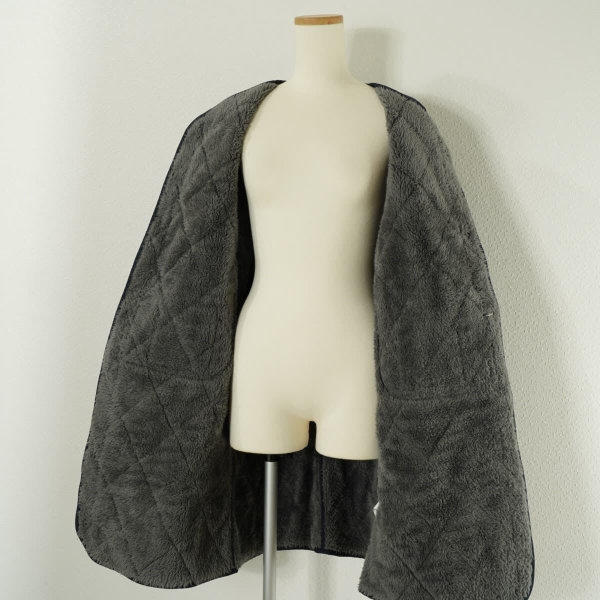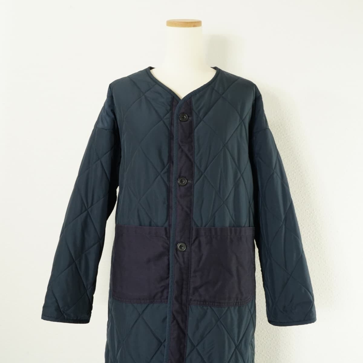 OMNIGOD オムニゴット キルトコート アウター ロング ノーカラー 裏ボア 紺 ネイビー