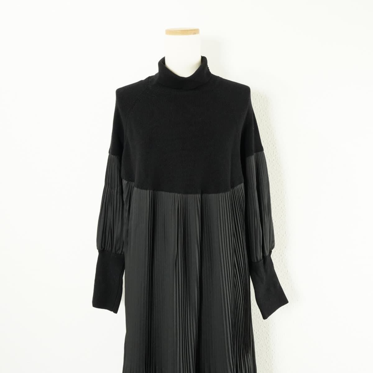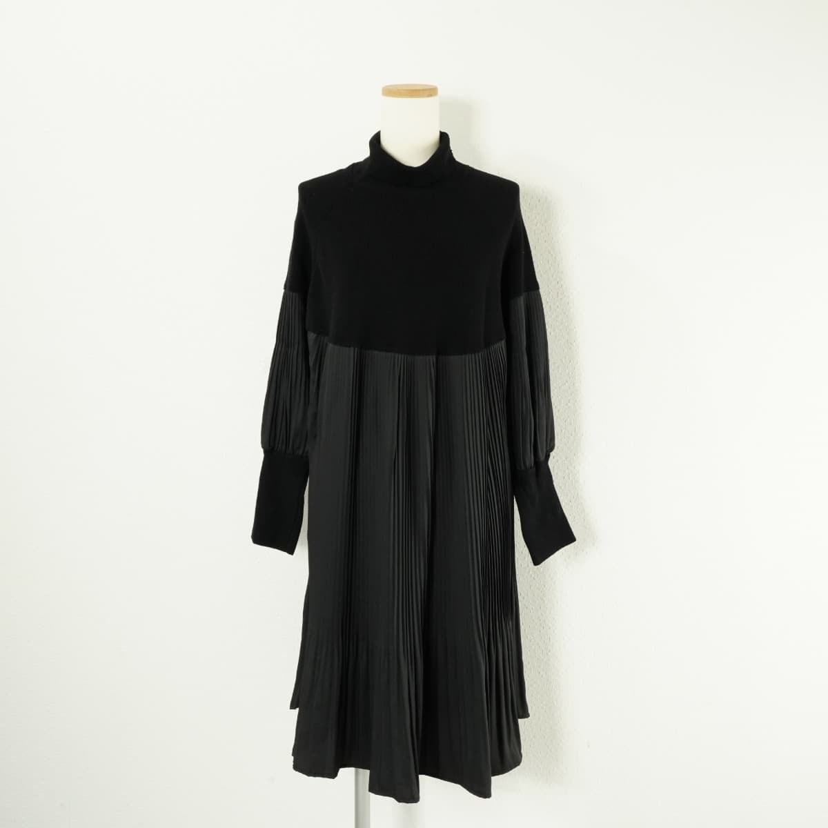 Koibito misaki コイビト ミサキ ワンピース リブ ニット ハイネック 長袖 プリーツ フレアー スカート 切替 黒