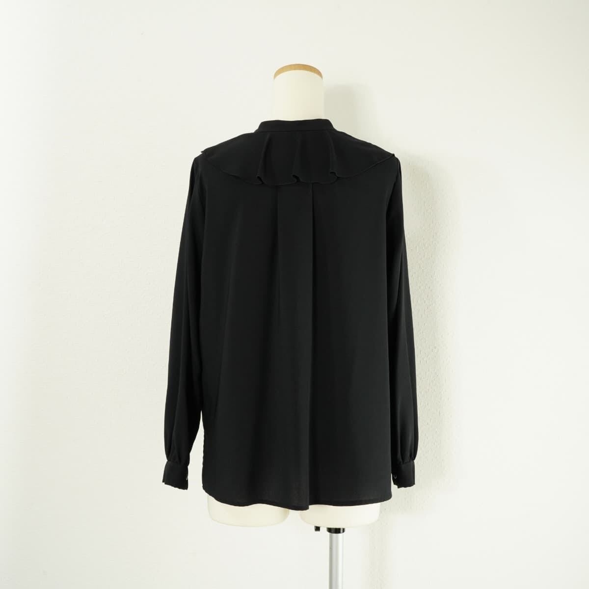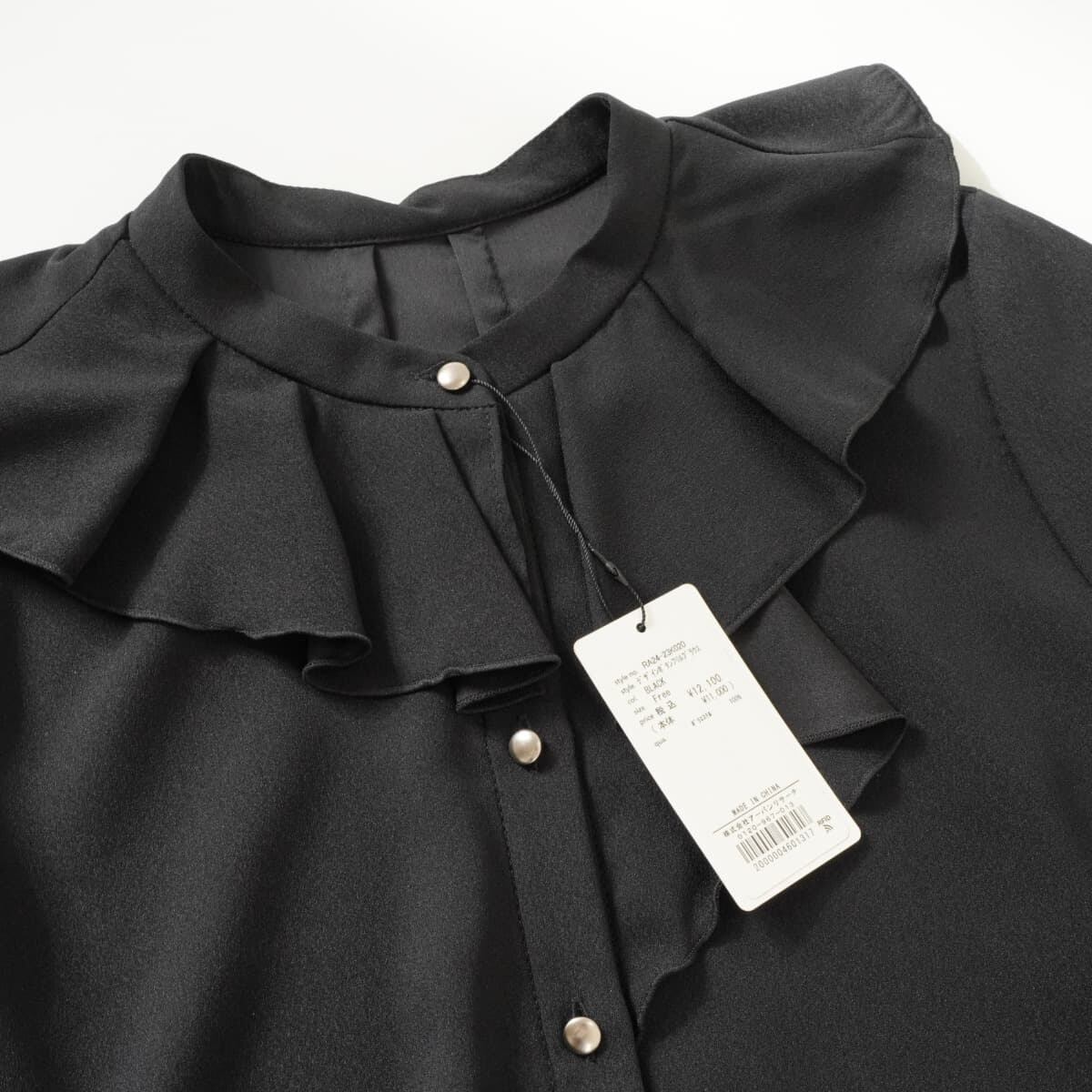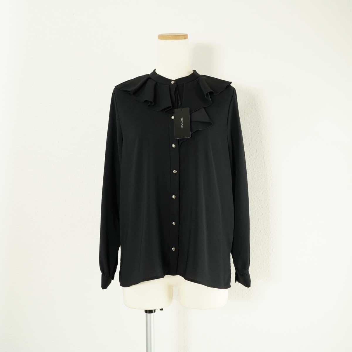 未使用 URBAN RESEARCH ROSSO アーバンリサーチ ロッソ デザインボタン フリル ブラウス トップス ノーカラー 長袖 ブラック 黒