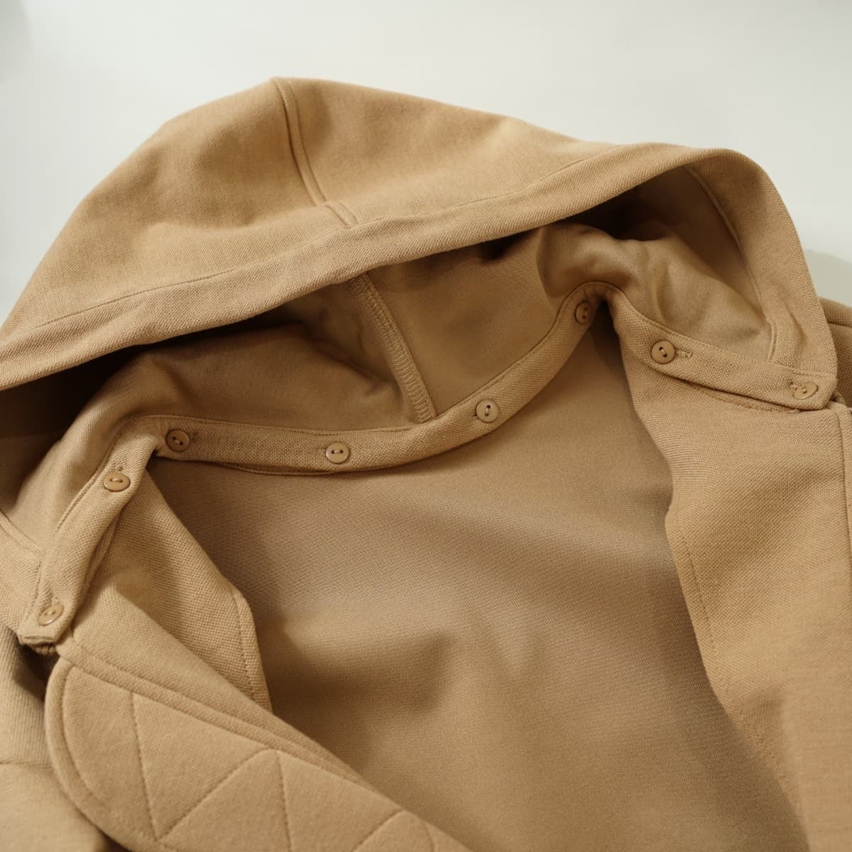 フロントはMA1のようなデザインで、コンパクトな丈感で丸いシルエット。フードは取り外しできます。