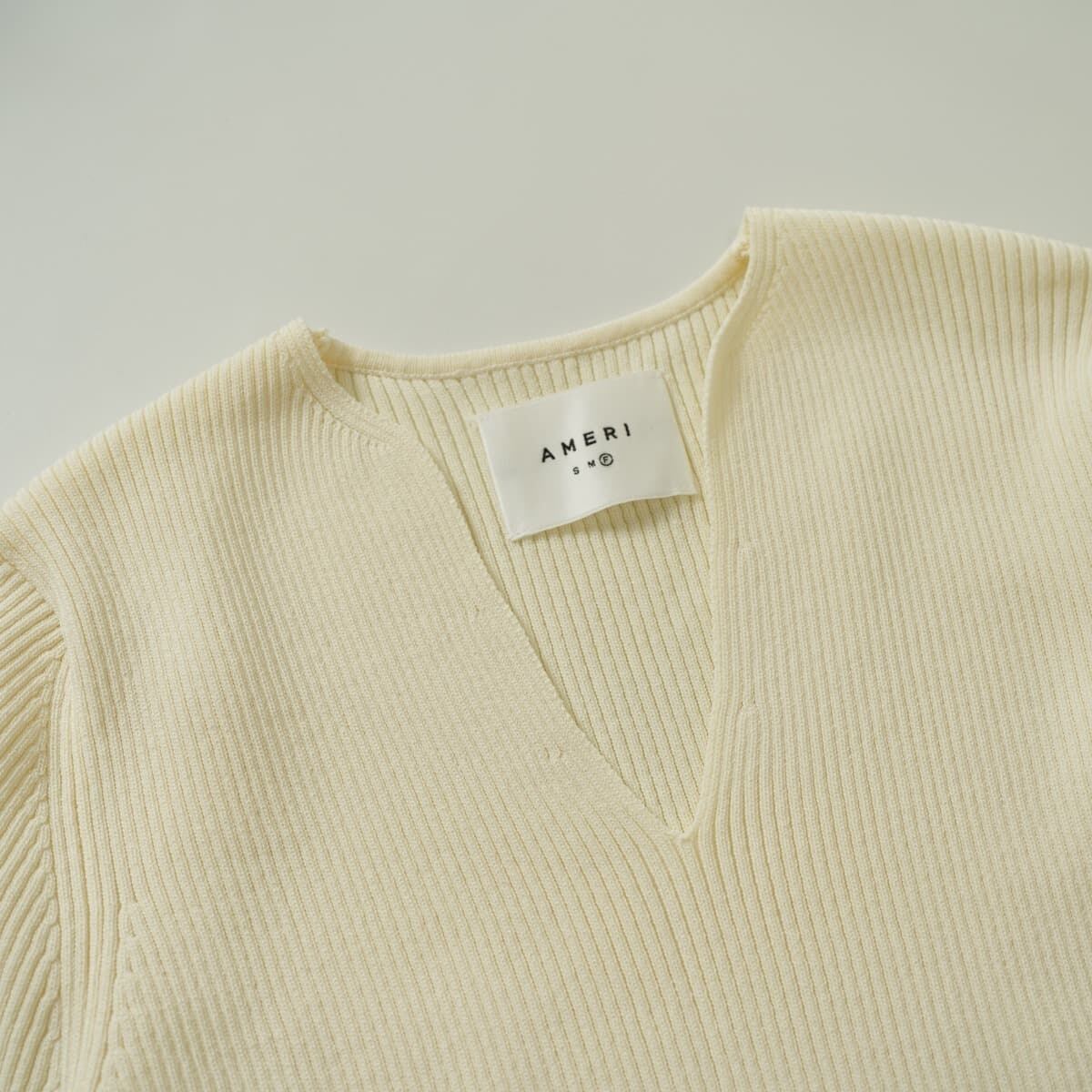 AMERI アメリ BASIC CURVE KNIT TOP ベーシック カーブ ニット トップ リブ カットソー トップス プルオーバー 長袖