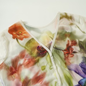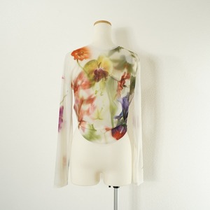 下から上へ咲き誇るような花の配置にも拘り、肌心地の良いシアー素材で、前後2WAYで着用可能なデザインのアイテムです。