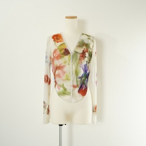 AMERI アメリ 2WAY SMOKE FLOWER SHEER TOP スモークフラワー シアートップ 前開き カーディガン トップス 透け感 長袖 Vネック 花柄