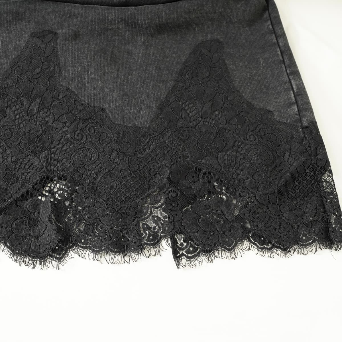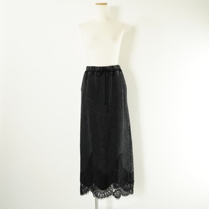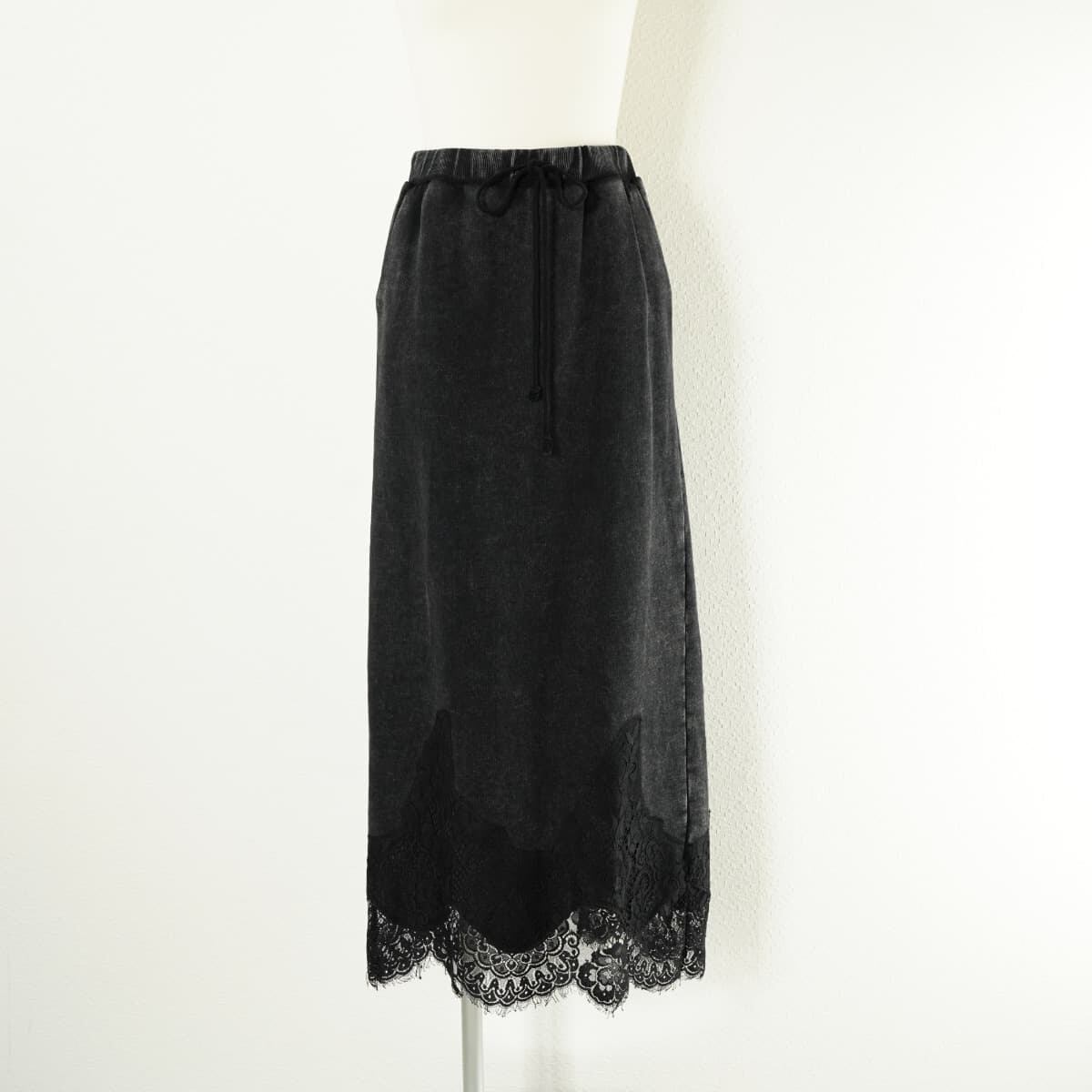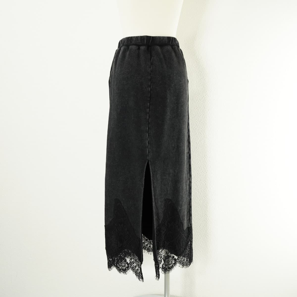 AMERI アメリ CHEMICAL OVERDYE LACE SWEAT SKIRT ケミカル染め レース スウェット スカート ロング ブラック 黒