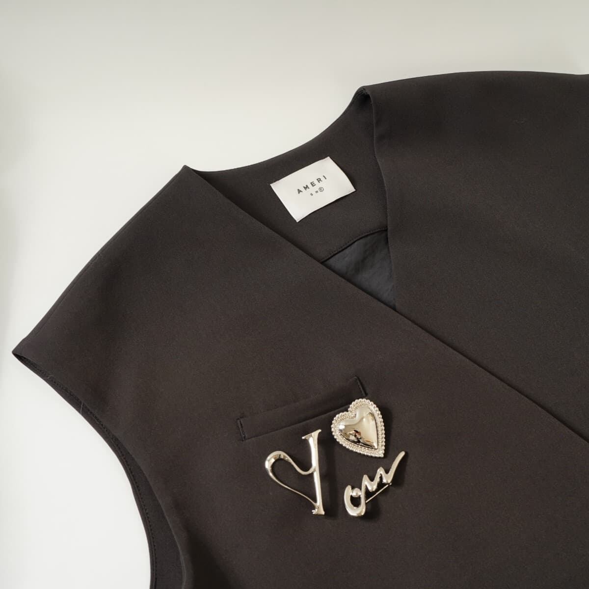 AMERI アメリ EMBELLISH BROOCH VEST エムベリシ ブローチ ベスト ロング 黒