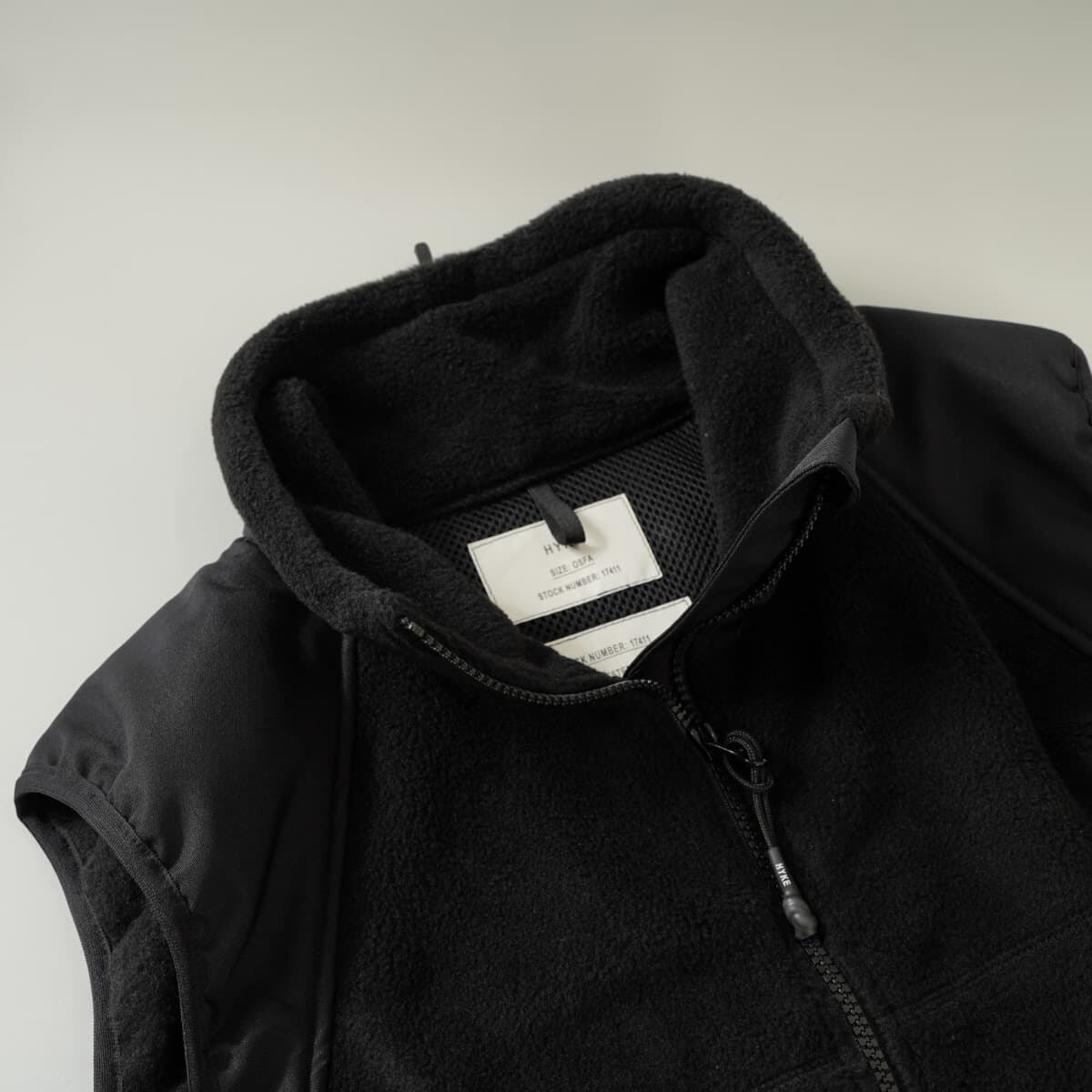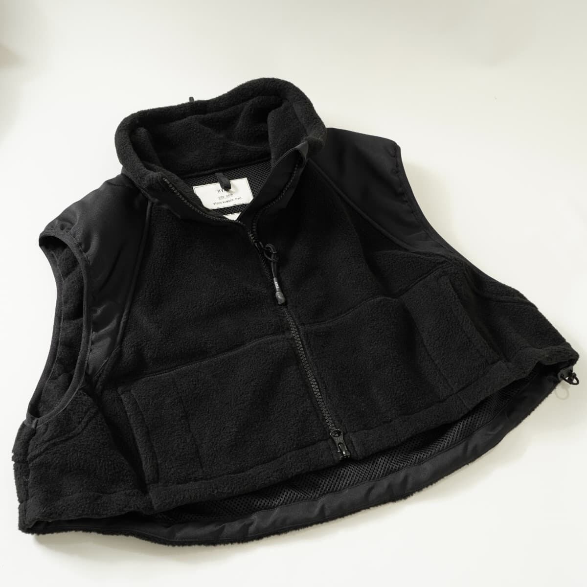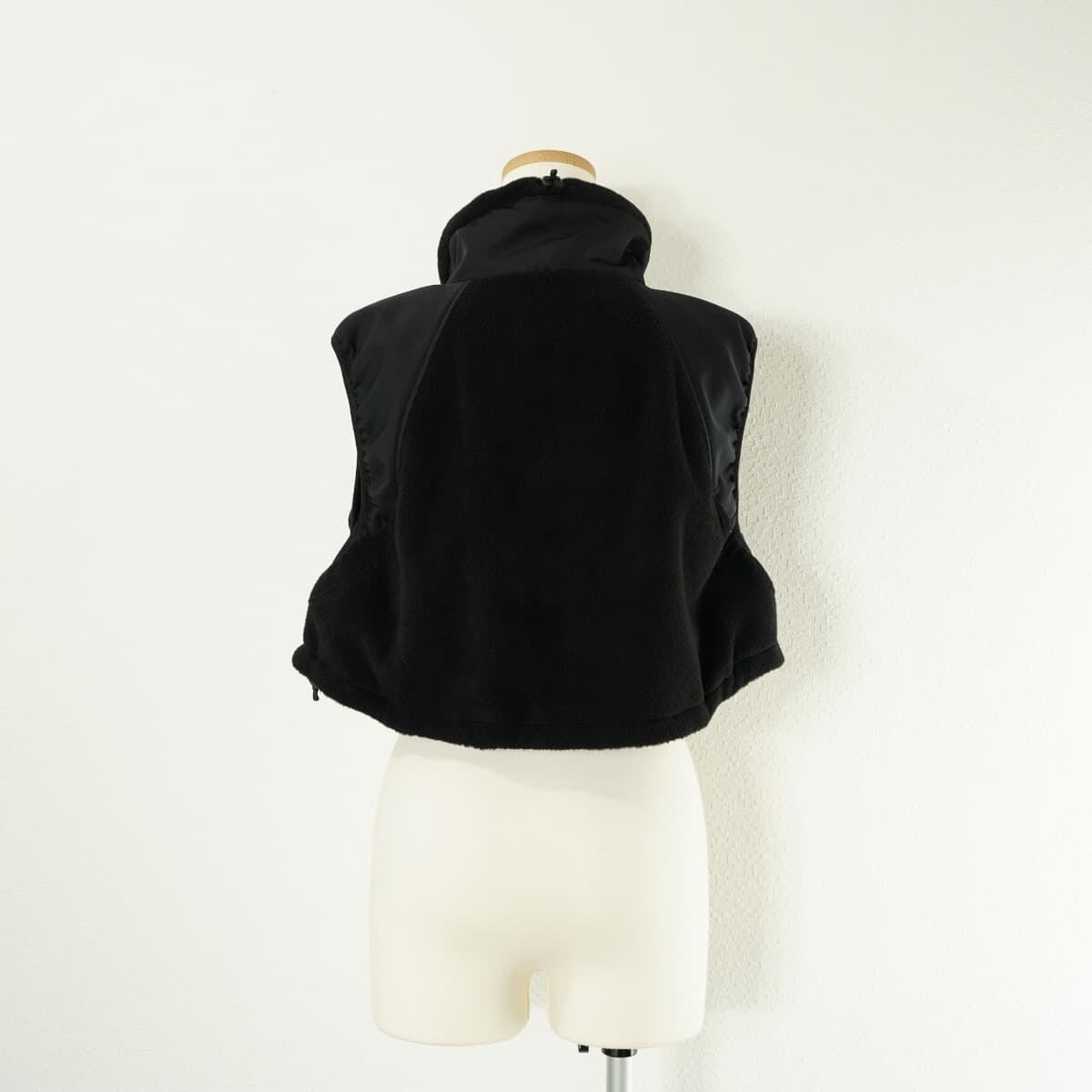 HYKE FLEECE CROPPED VEST フリース クロップド ベスト ショート丈 ジップアップ 切替素材 ブラック 黒