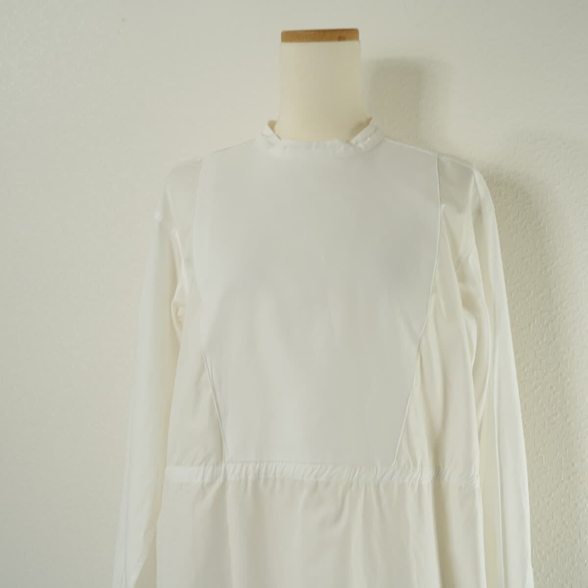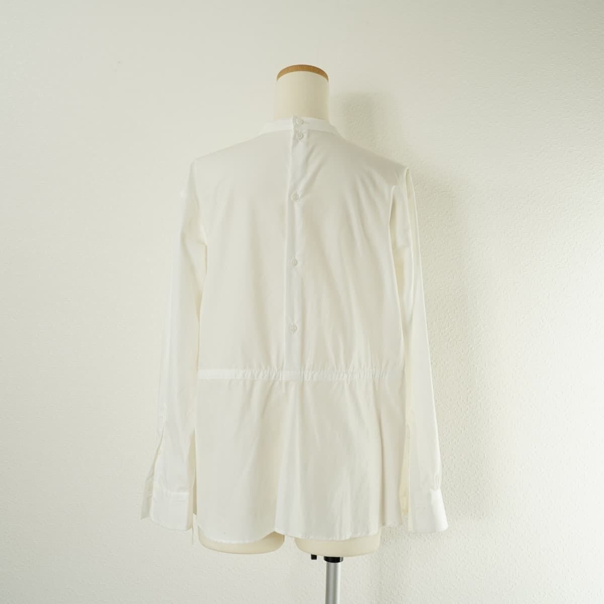 BACCA バッカ コットン ブロード スタンドカラー ブザム シャツ ブラウス ノーカラー 長袖 トップス プルオーバー ホワイト 白 レディース
