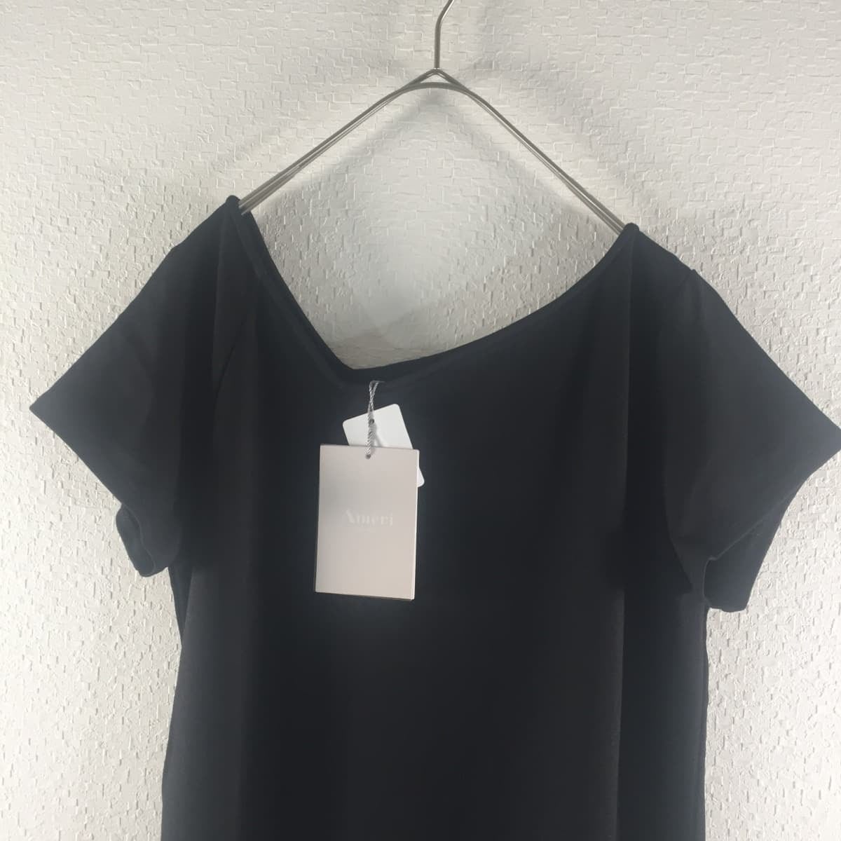 Ameri MEDITTERA LINE アメリヴィンテージ MEDI CUT NECKLINE LOW FLARE DRESS ネックラインローフレアドレス 半袖ロングワンピース