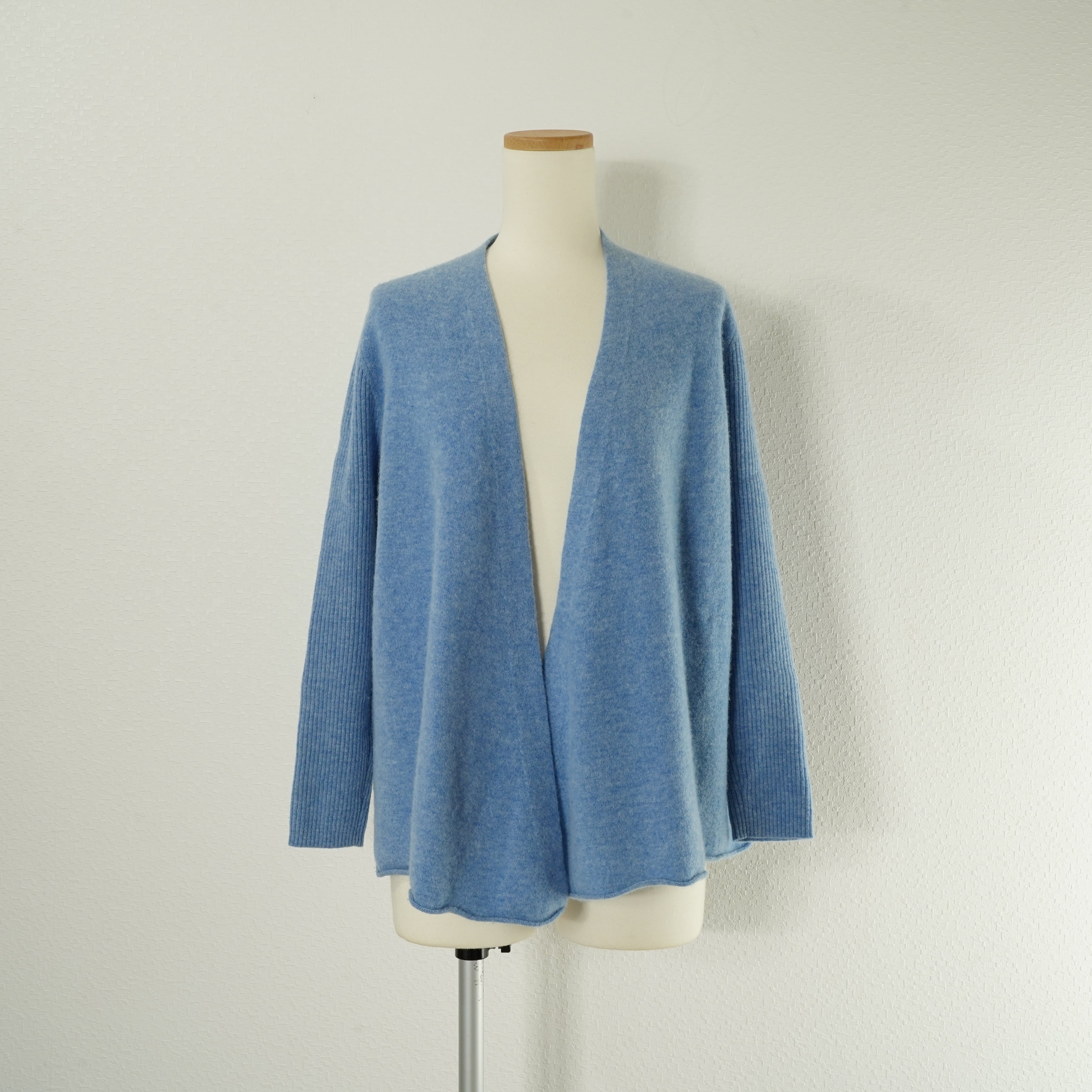 リブ袖が細身のAラインが綺麗なショールカーディガンです。