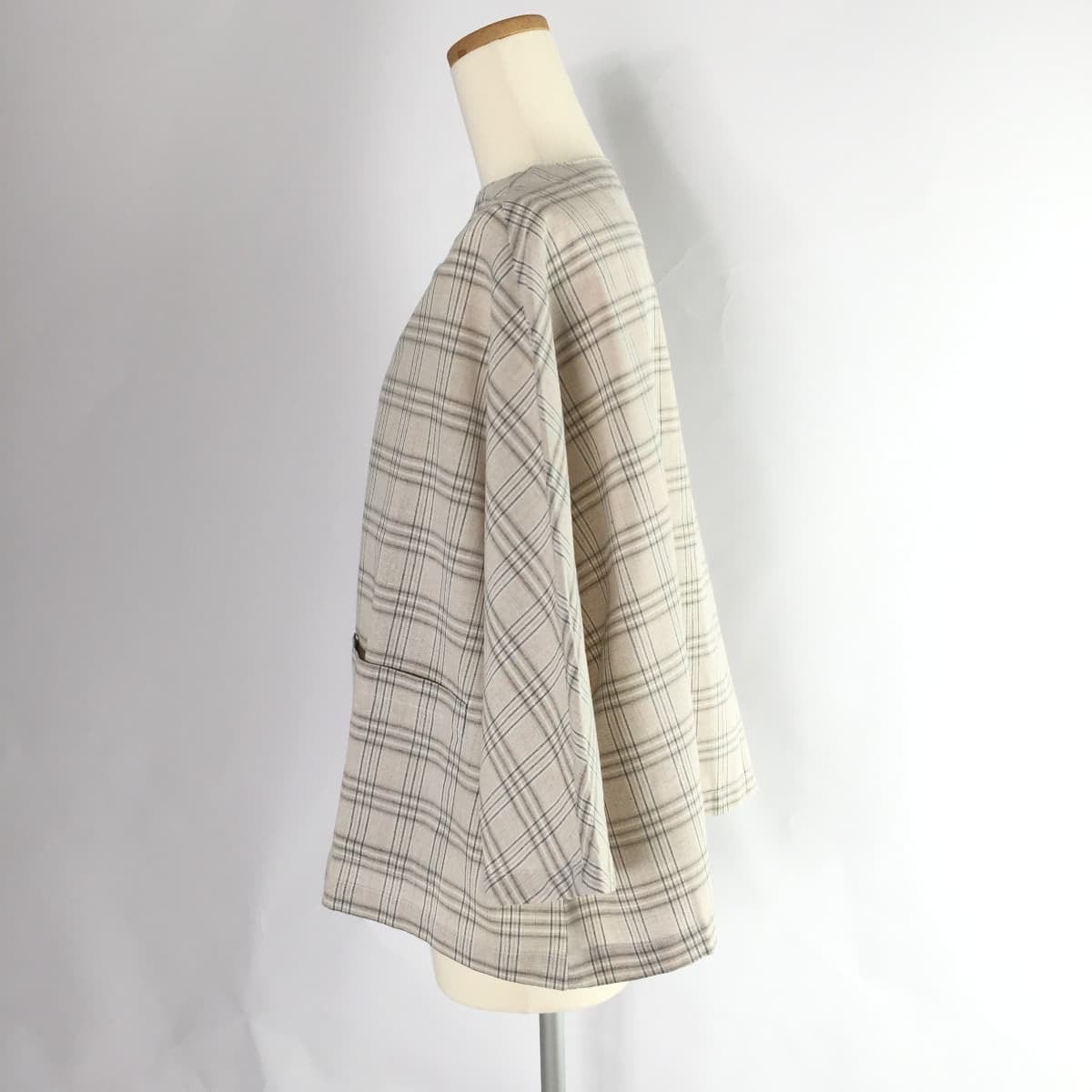 ohana オハナ コットンリネンチェックジャケット フレアトップス カーディガン ナチュラル