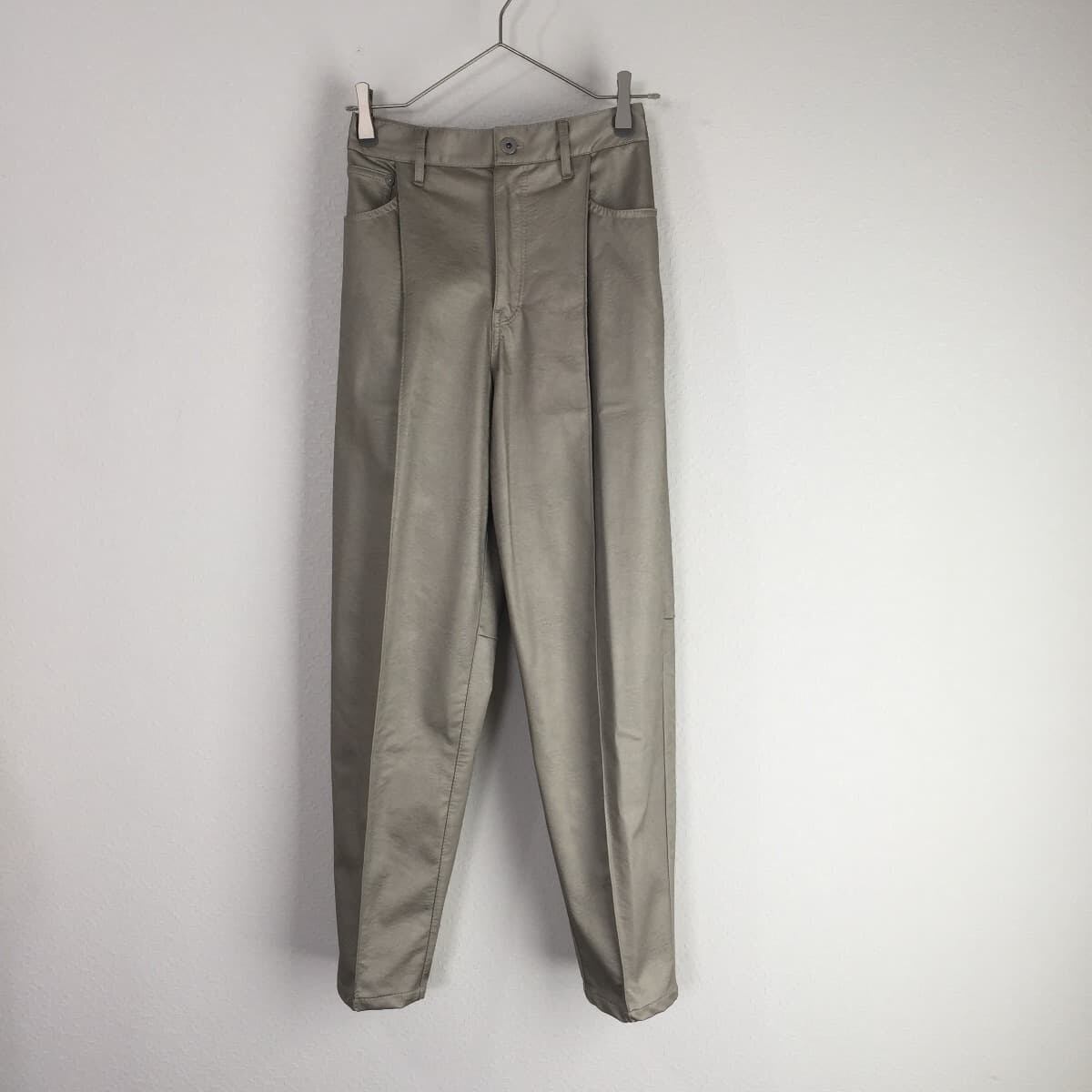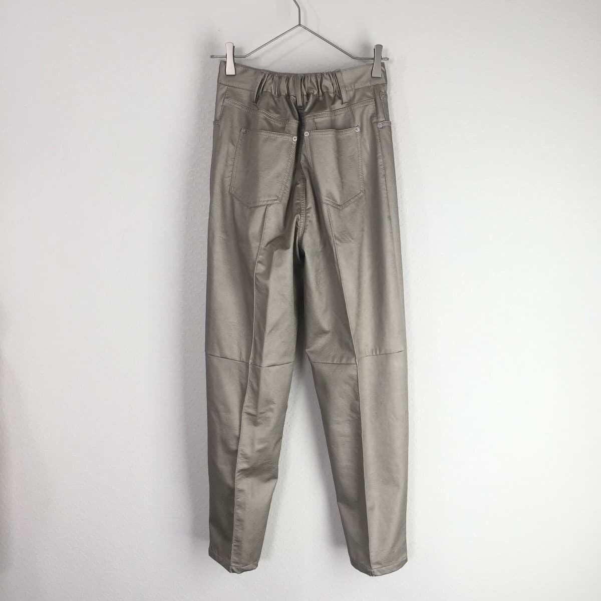 コメント:繊細なラメ感のある合皮を使用した美シルエットのテーパードパンツ。
