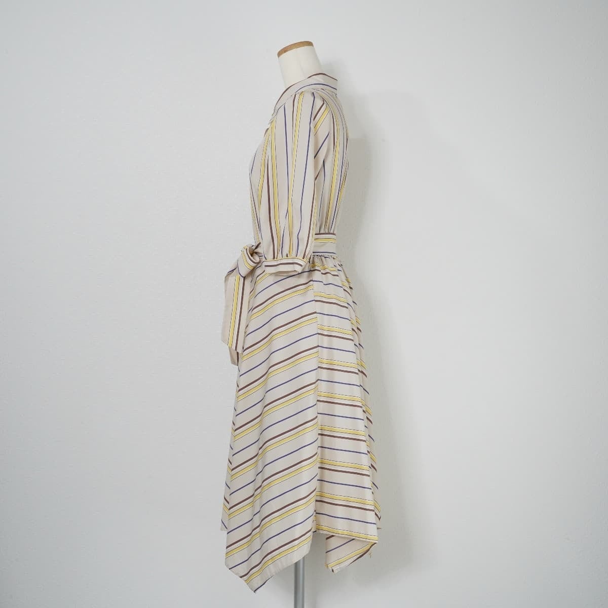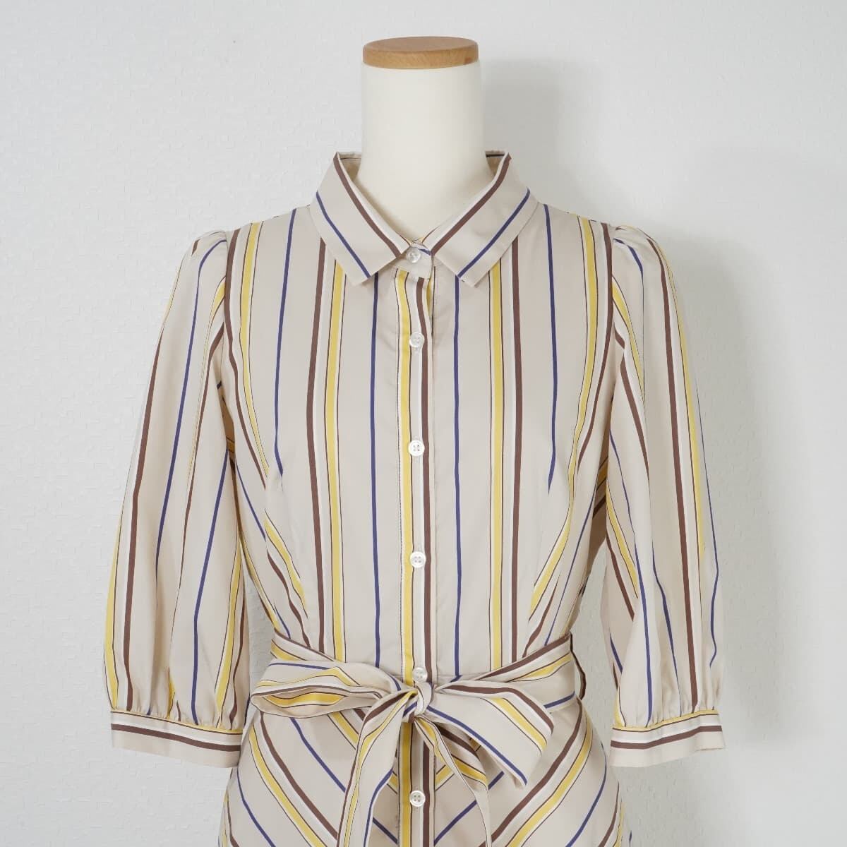 And Couture アンドクチュール ストライプシャツワンピース ロング フレア ウエストリボン