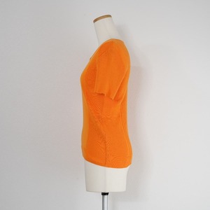 Leilian レリアン サマーニット リブカットソー トップス ラインストーン 半袖 オレンジ
