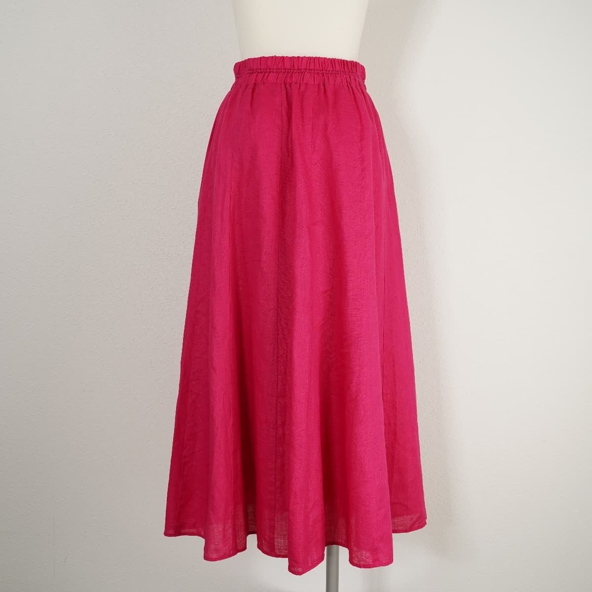 ふんわりと裾にかけて広がる柔らかなシルエットで、清涼感のあるリネン生地で仕上げたロングスカート。夏に頼れる手洗い可能なイージーケアも嬉しいポイント。ナチュラルな発色の美しさが際立つトレンドのカラーで、カジュアルからきれいめまで、一枚合わせるだけでコーディネートの主役になるアイテムです。ウエストは総ゴムです。
