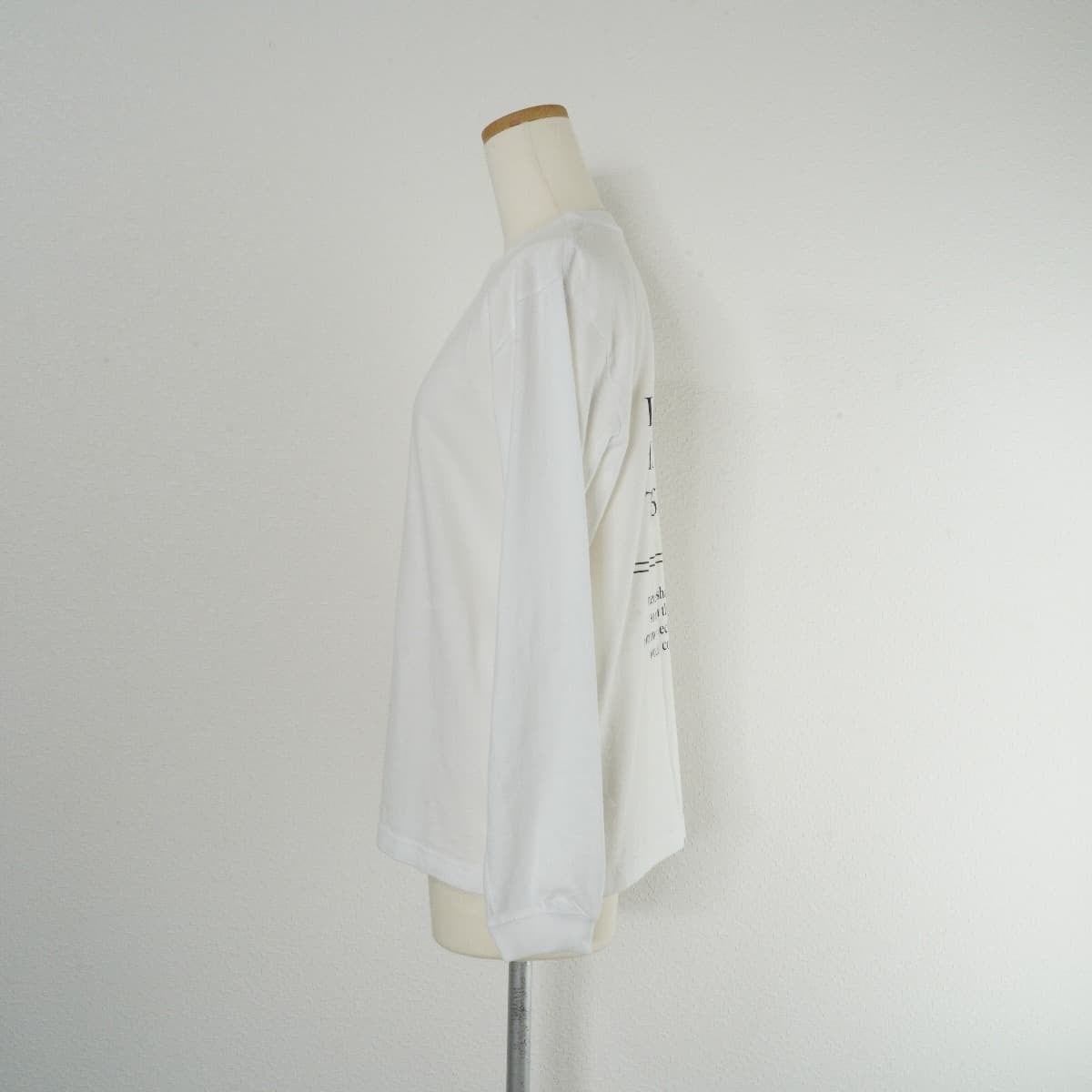 やわらかくて表面感のきれいな天竺素材を使用し、ブラックのプリントが背面に大きく入ったホワイトベースのデザイン。大きすぎないサイズ感で、レイヤードスタイルが増える冬のインナーとしても汎用性のあるアイテムです。