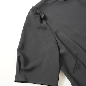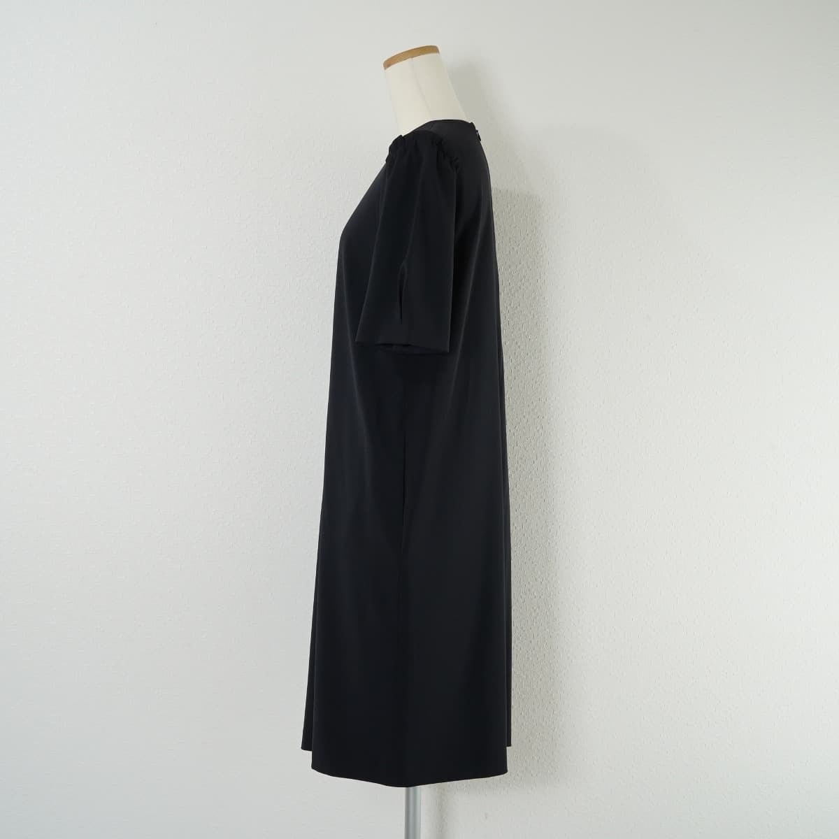 コメント:上品なのひざ丈ワンピース。半袖より少し丈のある5部袖です。肩にフリルのあるデザインです。アンダースカート付きです。