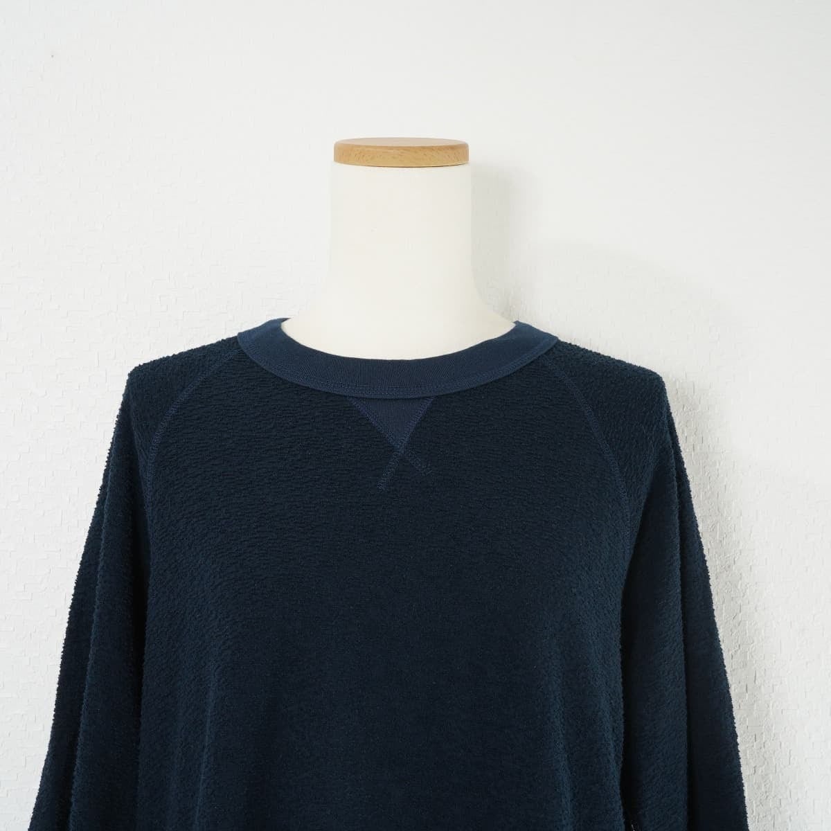 clip.tab クリップタブ ブラッシュパイル エルボーパッチ プルオーバー トップス カットソー コットン 紺