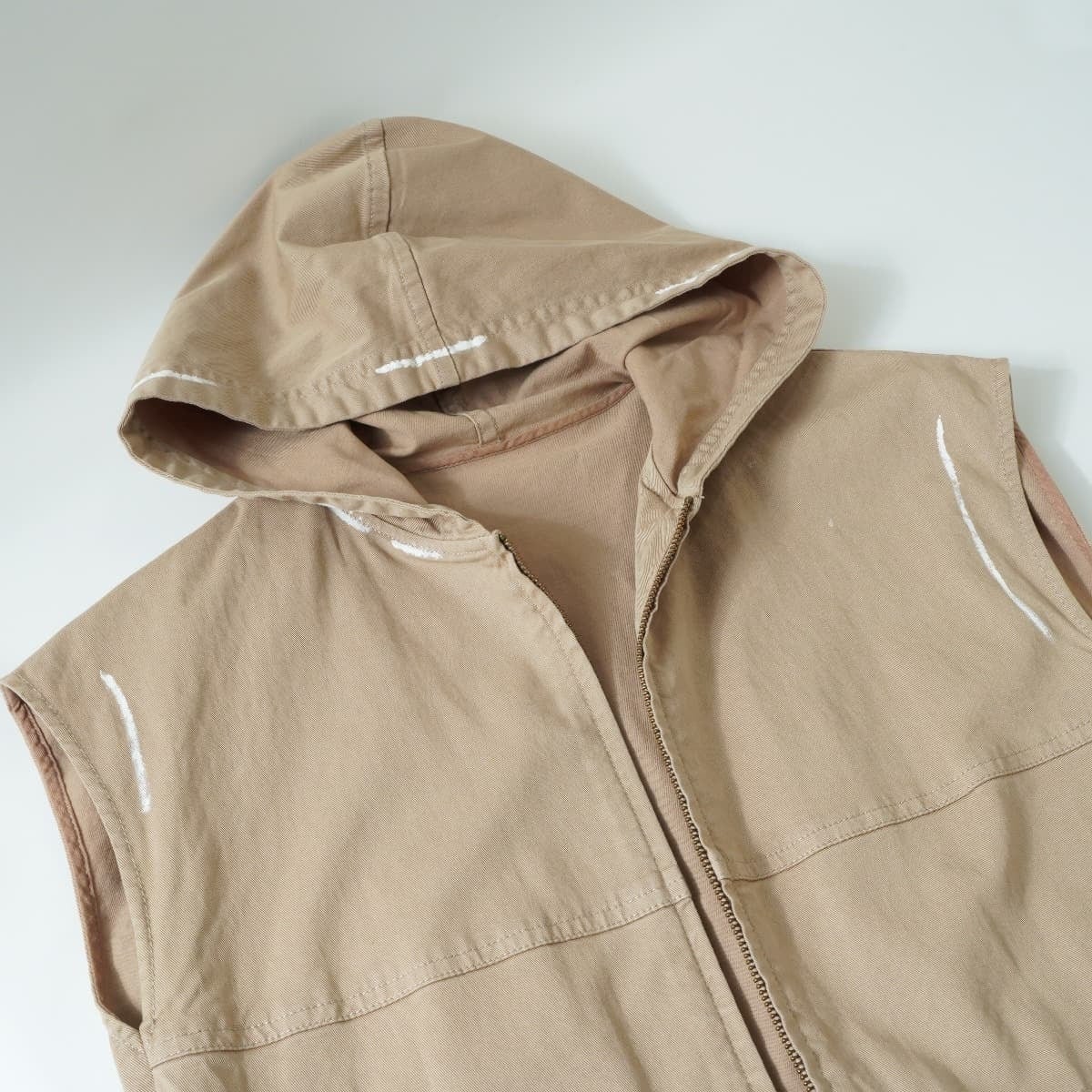 DUAL VIEW デュアルビュー ロング ベスト ジレ ジップアップ パーカー フード ペイント ベージュ